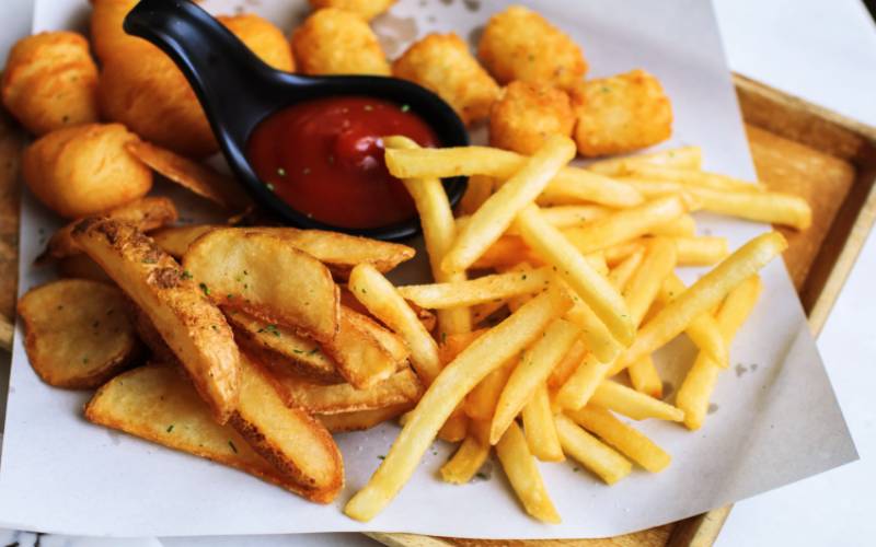 일곱번째 뱃살 빼는 최고의 방법은 지방 섭취를 줄이는 것입니다. 트랜스 지방은 혈관에 노폐물을 쌓이게 만드는 주범인데요. 닭고기의 껍질, 밀가루에 튀긴 식품 등은 트랜스 지방 함유량이 높아요. 다만 과도하게 지방을 적게 먹을 시, 상대적으로 탄수화물의 많이 먹게 됩니다. 이렇게 되면 중성 지방의 수치가 증가하면서 내장 지방도 많아질 수 있으므로 적정량의 섭취가 필요해요.