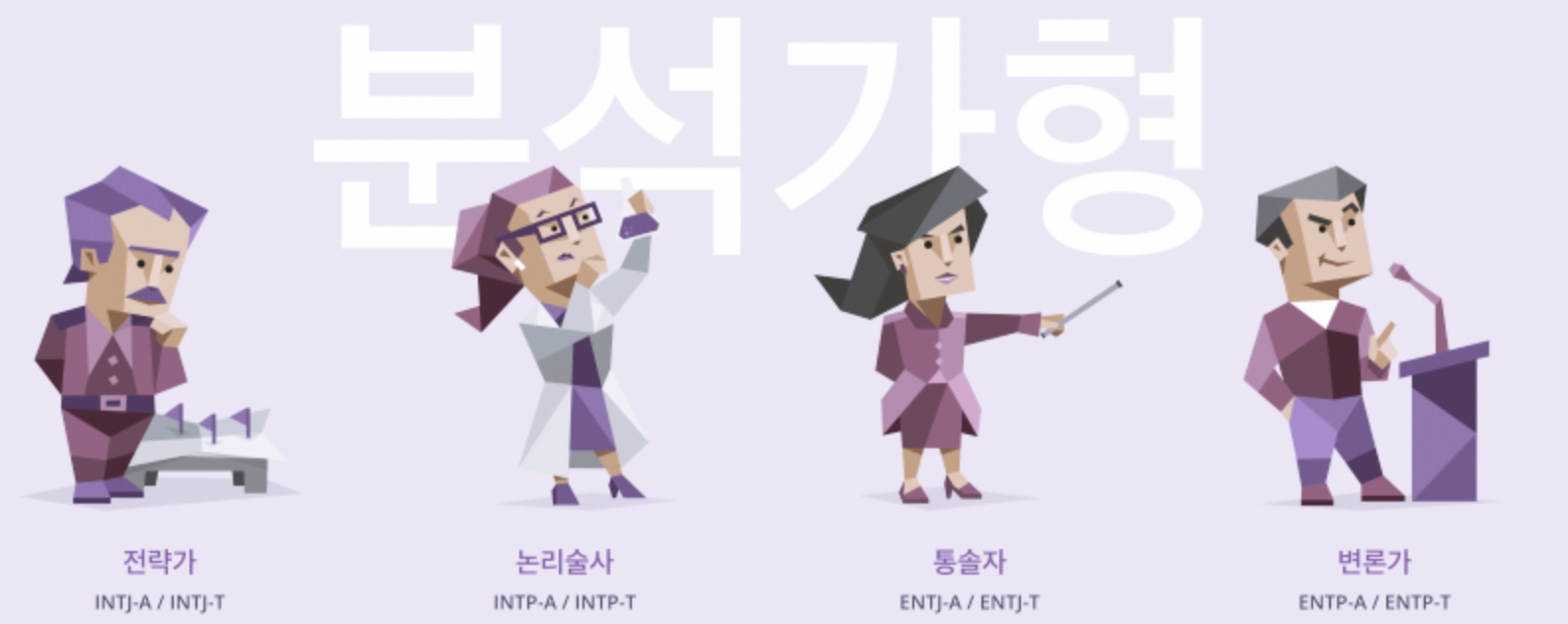 | 분석가형 | ENTP | INTJ | ENTJ | INTP |
