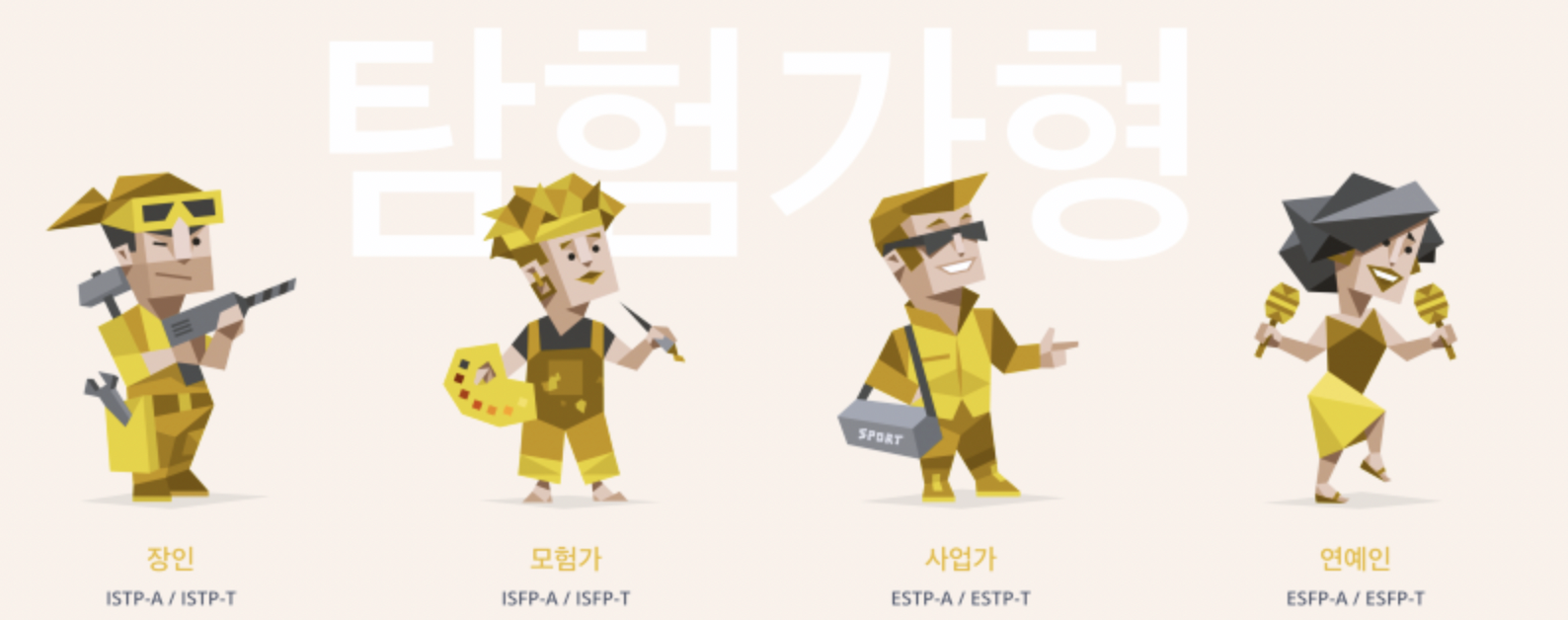 | 탐험가형 | ESFP | ISTP | ESTP | ISFP |